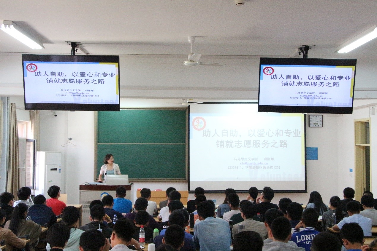 第四讲,马克思学院项丽娜老师以《助人自助,用爱心和专业铺就志愿服务之路》为主题进行授课。