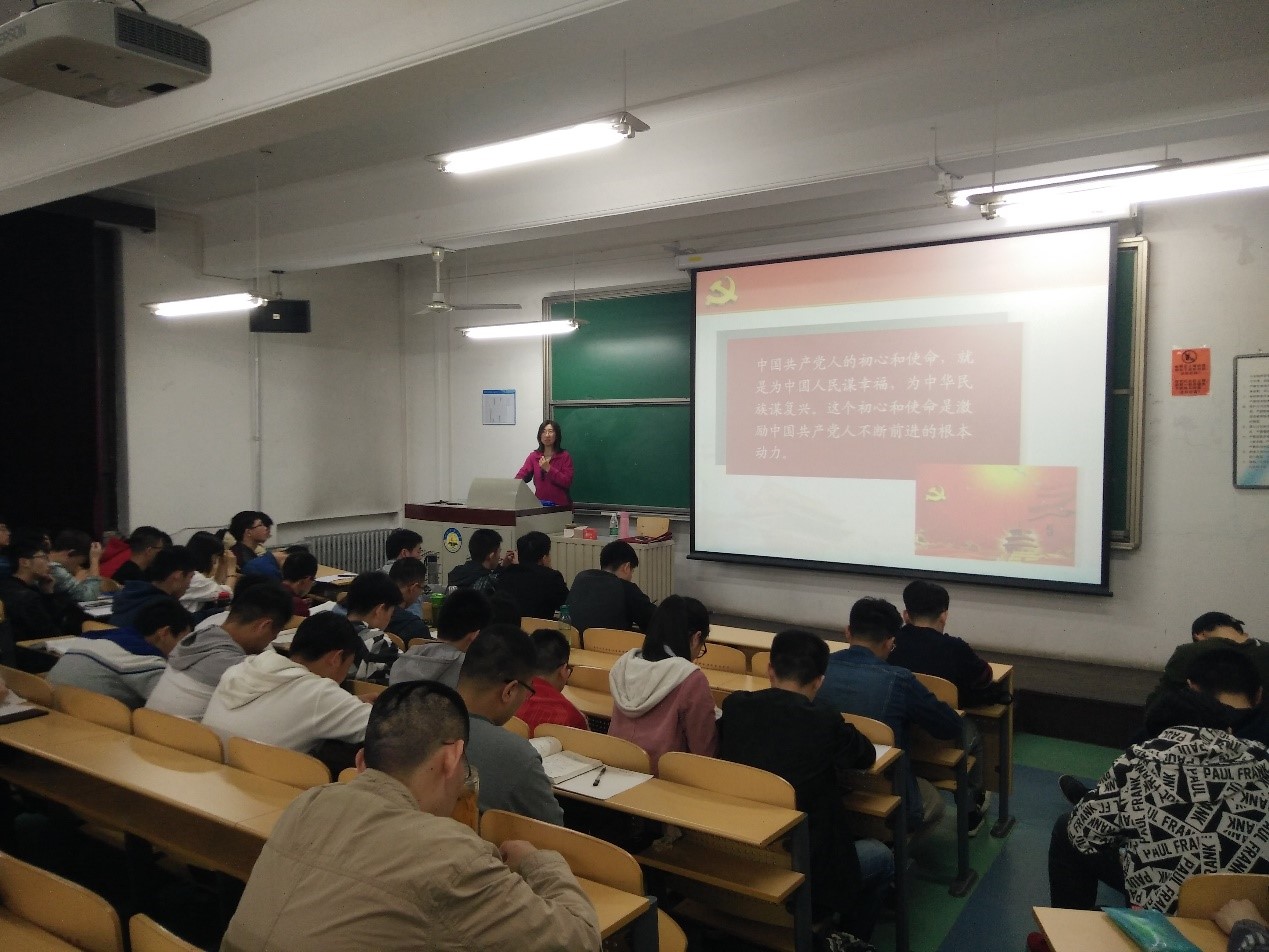 王老师首先向大家讲述了中国特色社会主义新时代的伟大征程,介绍了我国社会的主要矛盾和历史使命,多方位论证了新时代中国特色社会主义思想的重要指导意义和现实意义,然后又结合当下形势告诉同学们:一个时代有一个时代的问题,一代人有一代人的使命。虽然我们已走过万水千山,但仍需要不断跋山涉水,牢记使命,不忘初心。
