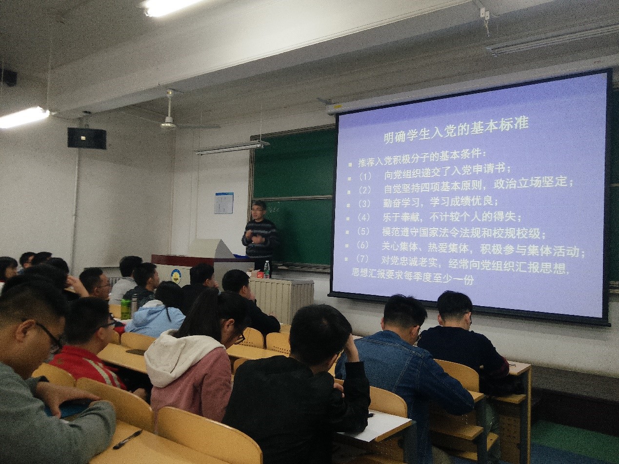 为深入学习宣传贯彻十九大精神,继续践行“两学一做”学习教育,加强入党积极分子的“入口”教育,坚定学生党支部书记的理想信念,充分发挥基层党组织战斗堡垒作用。机电学院党委于4月15、16日晚在学院路校区组织两期党课培训,67名学院路校区学生入党积极分子及26名学生党支部书记共计93人参加,并于5月7日在沙河校区举办积极分子培训班,78名本科17级入党积极分子参加。学院邀请马克思学院王晓莉、项丽娜老师、学院党委书记张晓红、学院党委副书记兼副院长翟国栋和学院党委秘书韩小愚分别讲授党课,同时组织学员观看相关教育视频。